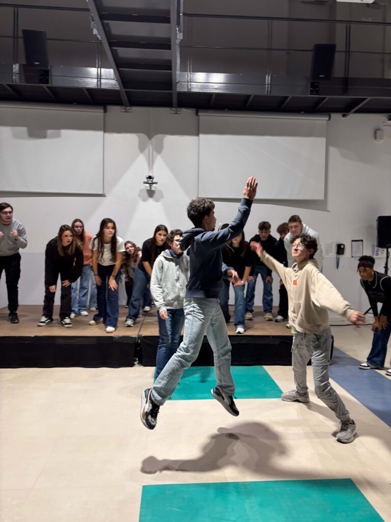 Les élèves ont ensuite bénéficié d’un PEPS (parcours d’éducation, de pratique et de sensibilisation) intitulé « Viser la lune ». Pendant une semaine, ils ont travaillé l’écriture et le jeu théâtral avec la compagnie Lolium, en partenariat avec le Phénix, scène nationale de Valenciennes. À partir du roman Le syndrome du spaghetti, de Marie Vareille, ils ont engagé une réflexion sur les rêves de réussite par le sport, le deuil, l’amour et le déterminisme social.