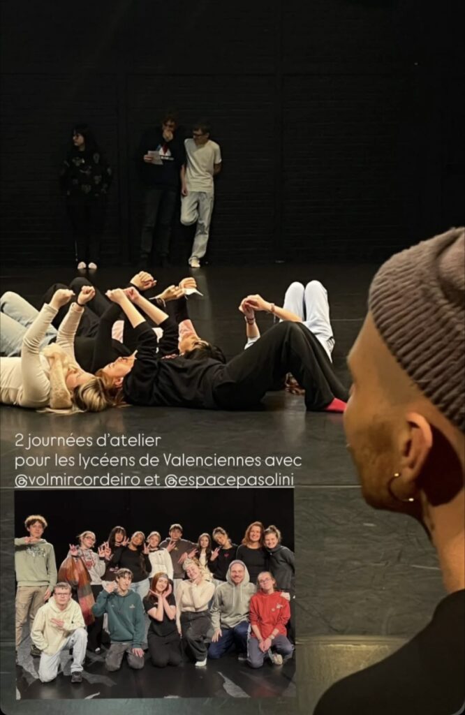 Accueillis à l’Espace Pasolini, laboratoire de création artistique de Valenciennes, ils ont travaillé avec le danseur, chorégraphe et performeur brésilien Volmir Cordeiro et la danseuse Blanche Giraudon. Guidés par Séverine Ollivier, enseignante de théâtre et référente culture de l’établissement, et par Nathalie Lecorre, Directrice de l’Espace Pasolini, les lycéens ont exploré la respiration, la construction d’un personnage dansé, la présence physique en public et le regard porté sur soi comme sur les autres.