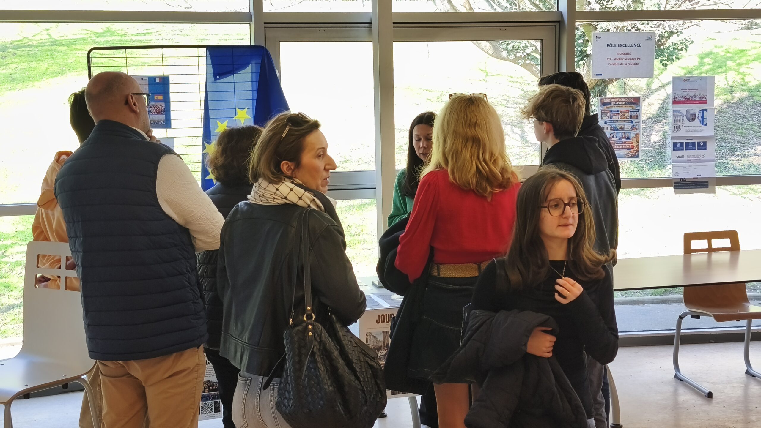 La dernière étape, au restaurant scolaire, a permis de présenter les enseignements communs, les options proposées (arts plastiques, théâtre, euro, sciences de laboratoire), les dispositifs d’accompagnement, les parcours d’excellence et les opportunités de mobilité ERASMUS.