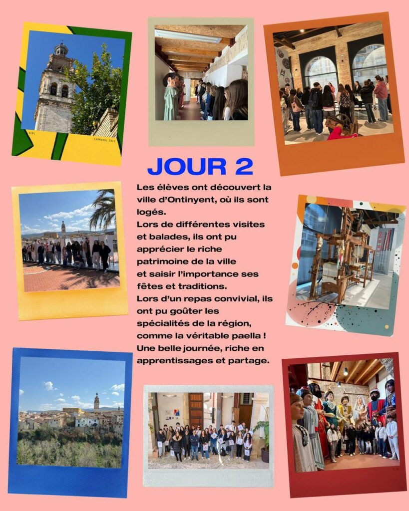 Les élèves ont d’abord découvert Ontinyent, ville d’accueil du séjour, à travers différentes visites permettant d’appréhender son patrimoine, ses fêtes et ses traditions. Ils ont partagé des moments conviviaux autour de spécialités locales, notamment la paella, favorisant les échanges interculturels et la pratique de la langue espagnole.